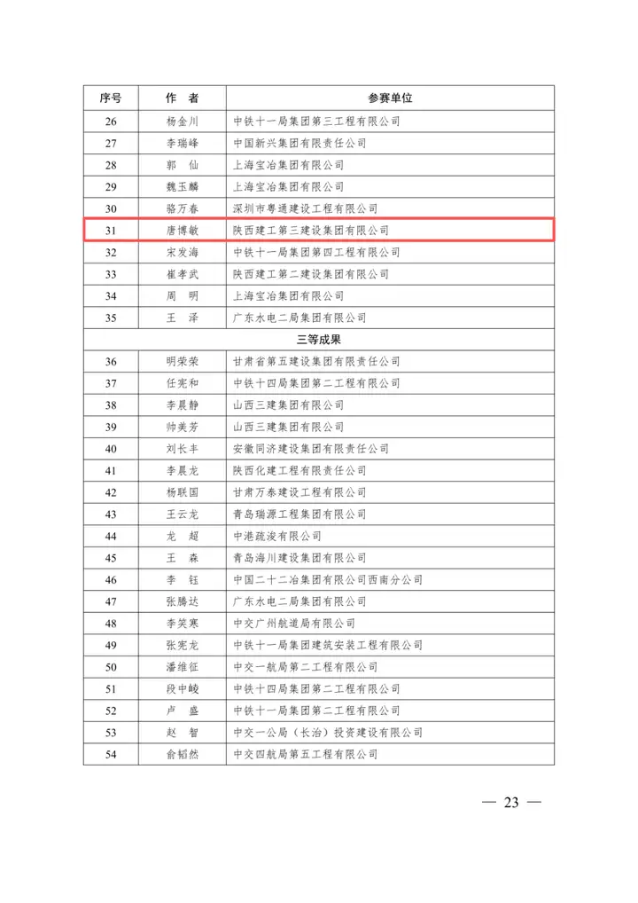 近日,中国施工企业管理协会发布了2025年工程建设企业文化建设系列活动竞赛成果,陕建三建集团申报的官方微信公众号,凭借生动活泼的创意形式、高效高质的内容推送、持续攀升的关注及转发量等方面的综合优势,从参加评选的公众号中脱颖而出,获评公众号竞赛二等成果,航天公司唐博敏书法作品在活动中获评书法竞赛二等成果。